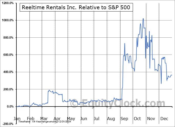 Analysis of the Reeltime Rentals Inc. (OTCMKT:RLTR) seasonal charts above shows that a Buy Date of December 21 and a Sell Date of March 22 has resulted in a geometric average return of 34.41% above the benchmark rate of the S&P 500 Total Return Index over the past 19 years. This seasonal timeframe has shown positive results compared to the benchmark in 13 of those periods. This is a good rate of success and the return strongly outperforms the relative buy-and-hold performance of the stock over the past 19 years by an average of 48.35% per year.