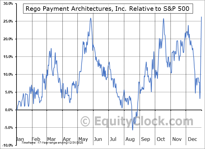 Analysis of the Rego Payment Architectures, Inc. (OTCMKT:RPMT) seasonal charts above shows that a Buy Date of August 17 and a Sell Date of December 5 has resulted in a geometric average return of 12.74% above the benchmark rate of the S&P 500 Total Return Index over the past 17 years. This seasonal timeframe has shown positive results compared to the benchmark in 10 of those periods. This is a fair rate of success and the return strongly outperforms the relative buy-and-hold performance of the stock over the past 17 years by an average of 34.19% per year.