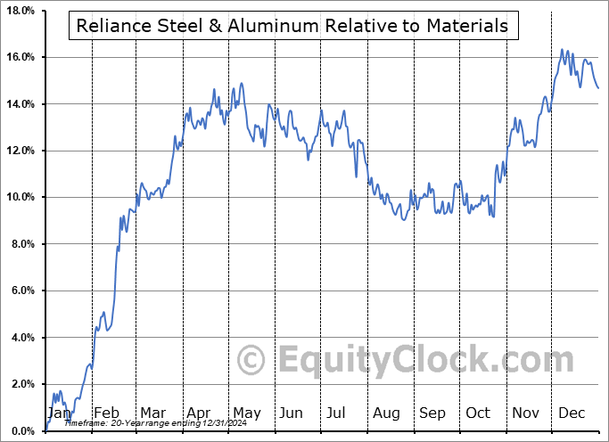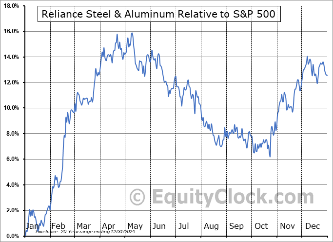 Analysis of the Reliance Steel & Aluminum (NYSE:RS) seasonal charts above shows that a Buy Date of October 23 and a Sell Date of March 4 has resulted in a geometric average return of 15.86% above the benchmark rate of the S&P 500 Total Return Index over the past 20 years. This seasonal timeframe has shown positive results compared to the benchmark in 18 of those periods. This is an excellent rate of success and the return strongly outperforms the relative buy-and-hold performance of the stock over the past 20 years by an average of 10.59% per year.