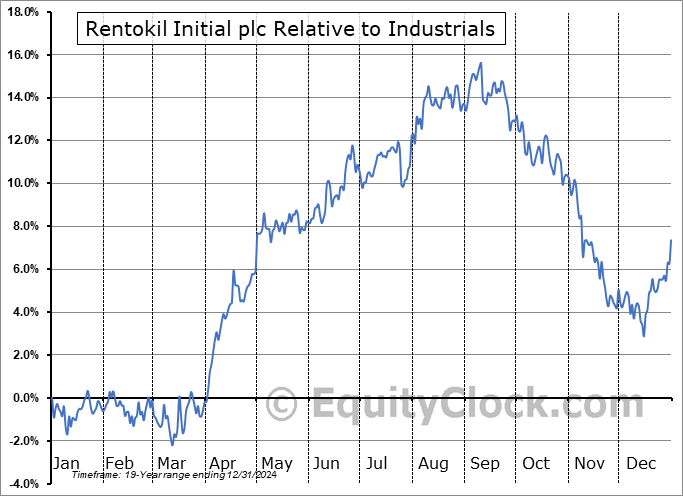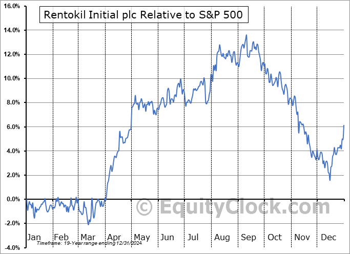 Analysis of the Rentokil Initial plc (NYSE:RTO) seasonal charts above shows that a Buy Date of April 1 and a Sell Date of August 22 has resulted in a geometric average return of 6.5% above the benchmark rate of the S&P 500 Total Return Index over the past 19 years. This seasonal timeframe has shown positive results compared to the benchmark in 15 of those periods. This is a good rate of success and the return strongly outperforms the relative buy-and-hold performance of the stock over the past 19 years by an average of 11.54% per year.