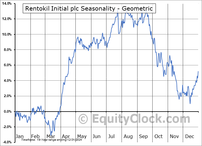 Rentokil Initial plc (NYSE:RTO) Seasonal Chart