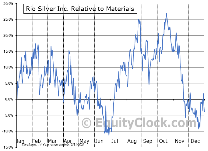 The seasonal timeframe is Inline with the period of seasonal strength for the Materials sector, which runs from November 20 to May 5. The seasonal chart for the broad sector is available via the following link: Materials Sector Seasonal Chart.