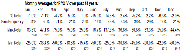 To download RYO.V seasonal chart data, please log in or Subscribe.
