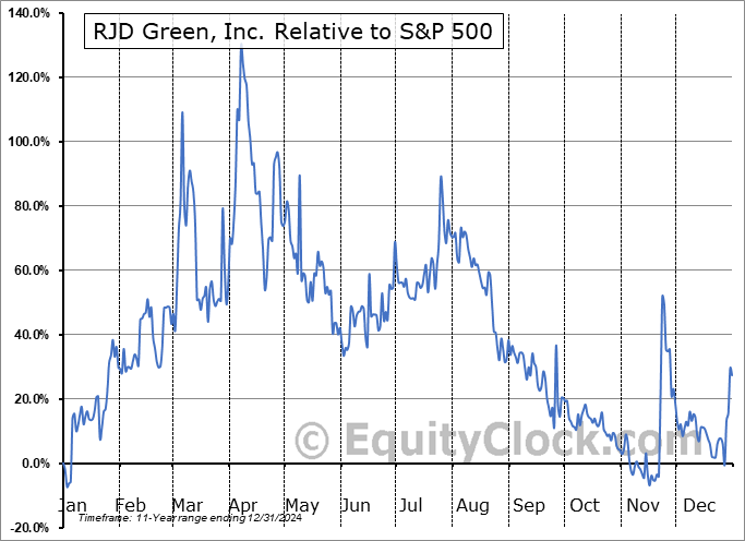 Analysis of the RJD Green, Inc. (OTCMKT:RJDG) seasonal charts above shows that a Buy Date of December 18 and a Sell Date of March 7 has resulted in a geometric average return of 65.38% above the benchmark rate of the S&P 500 Total Return Index over the past 11 years. This seasonal timeframe has shown positive results compared to the benchmark in 9 of those periods. This is a very good rate of success and the return strongly outperforms the relative buy-and-hold performance of the stock over the past 11 years by an average of 73.99% per year.