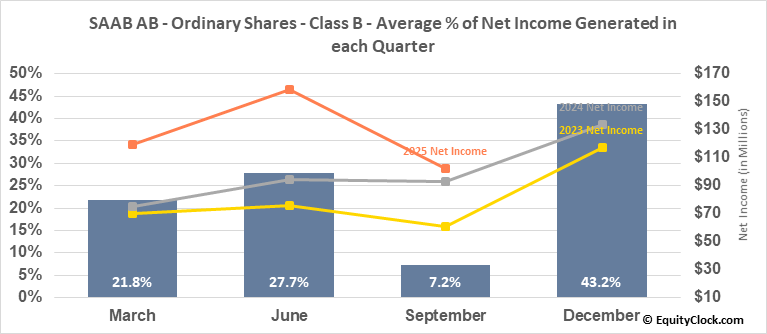 SAAB AB – Ordinary Shares – Class B (OTCMKT:SAABF) Seasonal Chart