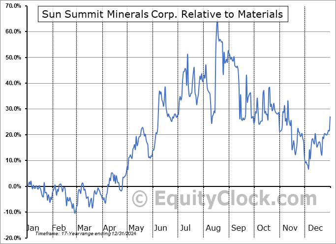 Analysis of the Sun Summit Minerals Corp. (TSXV:SMN.V) seasonal charts above shows that a Buy Date of July 23 and a Sell Date of October 15 has resulted in a geometric average return of 4.55% above the benchmark rate of the S&P 500 Total Return Index over the past 17 years. This seasonal timeframe has shown positive results compared to the benchmark in 11 of those periods. This is a fair rate of success and the return strongly outperforms the relative buy-and-hold performance of the stock over the past 17 years by an average of 36.07% per year.