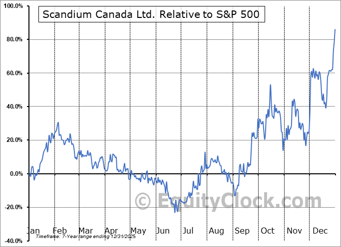 Analysis of the Scandium Canada Ltd. (TSXV:SCD.V) seasonal charts above shows that a Buy Date of November 14 and a Sell Date of February 18 has resulted in a geometric average return of 42.89% above the benchmark rate of the S&P 500 Total Return Index over the past 6 years. This seasonal timeframe has shown positive results compared to the benchmark in 6 of those periods. This is an excellent rate of success and the return strongly outperforms the relative buy-and-hold performance of the stock over the past 6 years by an average of 73.85% per year.