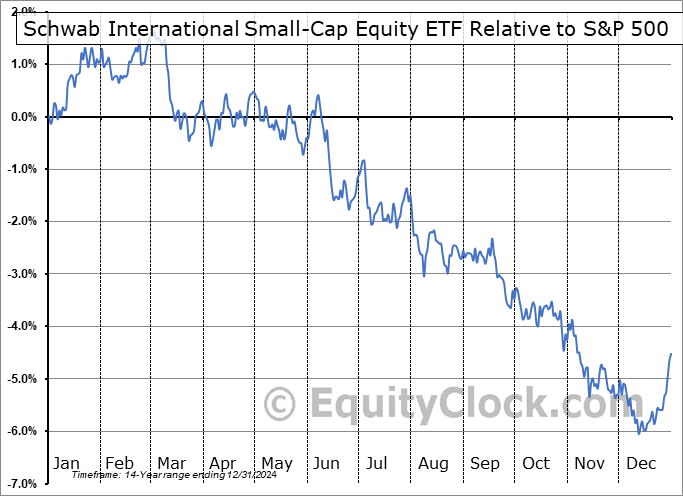 Analysis of the Schwab International Small-Cap Equity ETF (NYSE:SCHC) seasonal charts above shows that a Buy Date of November 30 and a Sell Date of February 18 has resulted in a geometric average return of 0.16% above the benchmark rate of the S&P 500 Total Return Index over the past 14 years. This seasonal timeframe has shown positive results compared to the benchmark in 10 of those periods. This is a good rate of success and the return strongly outperforms the relative buy-and-hold performance of the stock over the past 14 years by an average of 8.59% per year.