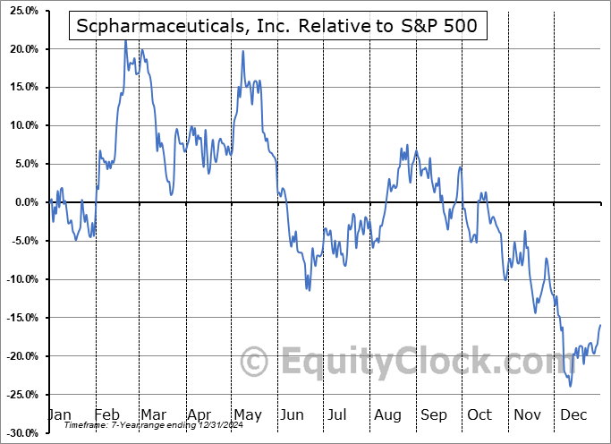 Analysis of the Scpharmaceuticals, Inc. (NASD:SCPH) seasonal charts above shows that a Buy Date of December 11 and a Sell Date of March 1 has resulted in a geometric average return of 16.83% above the benchmark rate of the S&P 500 Total Return Index over the past 7 years. This seasonal timeframe has shown positive results compared to the benchmark in 5 of those periods. This is a good rate of success and the return strongly outperforms the relative buy-and-hold performance of the stock over the past 7 years by an average of 42.63% per year.