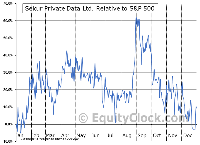 Analysis of the Sekur Private Data Ltd. (CSE:SKUR.CA) seasonal charts above shows that a Buy Date of December 28 and a Sell Date of April 30 has resulted in a geometric average return of 34.58% above the benchmark rate of the S&P 500 Total Return Index over the past 5 years. This seasonal timeframe has shown positive results compared to the benchmark in 4 of those periods. This is a very good rate of success and the return strongly outperforms the relative buy-and-hold performance of the stock over the past 5 years by an average of 73.5% per year.