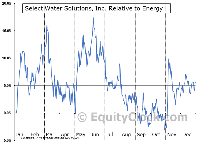 Analysis of the Select Water Solutions, Inc. (NYSE:WTTR) seasonal charts above shows that a Buy Date of March 23 and a Sell Date of June 11 has resulted in a geometric average return of 14.73% above the benchmark rate of the S&P 500 Total Return Index over the past 7 years. This seasonal timeframe has shown positive results compared to the benchmark in 7 of those periods. This is an excellent rate of success and the return strongly outperforms the relative buy-and-hold performance of the stock over the past 7 years by an average of 29.61% per year.