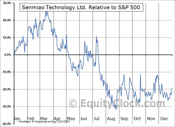 Analysis of the Senmiao Technology Ltd. (NASD:AIHS) seasonal charts above shows that a Buy Date of November 10 and a Sell Date of March 19 has resulted in a geometric average return of 20.02% above the benchmark rate of the S&P 500 Total Return Index over the past 6 years. This seasonal timeframe has shown positive results compared to the benchmark in 5 of those periods. This is a very good rate of success and the return strongly outperforms the relative buy-and-hold performance of the stock over the past 6 years by an average of 72.86% per year.