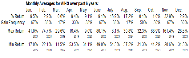 A word of caution: Only 6 years of data is available for shares of AIHS, perhaps insufficient to create a seasonal profile that accurately gauges the seasonal tendencies influencing the investment. Ideally, while 20 years is preferred, at least 10 years of data is required to perform a seasonal analysis that is considered to be reliable for future seasonal periods.