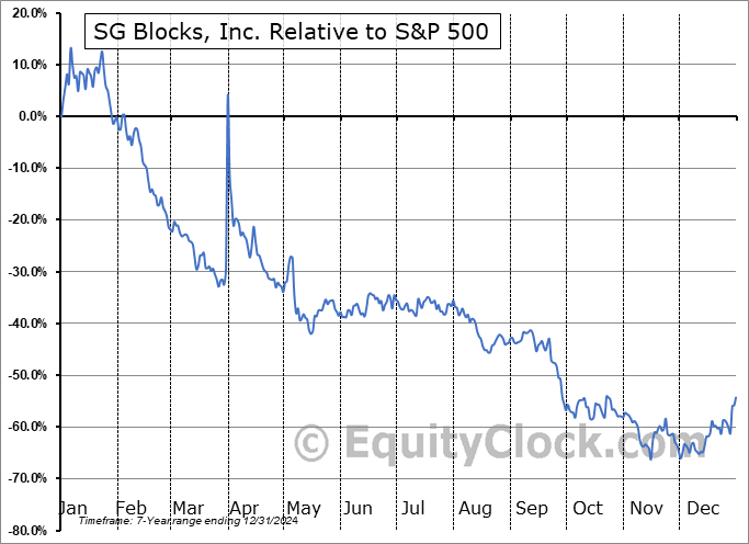 Analysis of the SG Blocks, Inc. (NASD:SGBX) seasonal charts above shows that a Buy Date of May 15 and a Sell Date of August 4 has resulted in a geometric average return of 9.09% above the benchmark rate of the S&P 500 Total Return Index over the past 6 years. This seasonal timeframe has shown positive results compared to the benchmark in 5 of those periods. This is a very good rate of success and the return strongly outperforms the relative buy-and-hold performance of the stock over the past 6 years by an average of 73.3% per year.