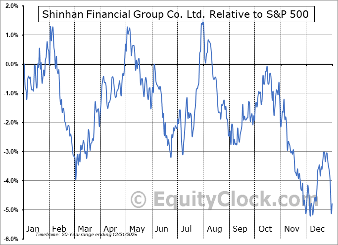 Analysis of the Shinhan Financial Group Co. Ltd. (NYSE:SHG) seasonal charts above shows that a Buy Date of January 22 and a Sell Date of April 30 has resulted in a geometric average return of 0.52% above the benchmark rate of the S&P 500 Total Return Index over the past 20 years. This seasonal timeframe has shown positive results compared to the benchmark in 14 of those periods. This is a good rate of success and the return strongly outperforms the relative buy-and-hold performance of the stock over the past 20 years by an average of 8.02% per year.
