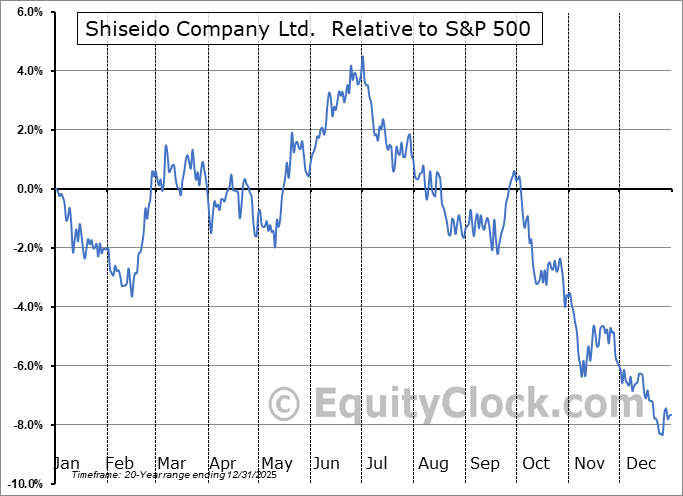 Analysis of the Shiseido Company Ltd. (OTCMKT:SSDOY) seasonal charts above shows that a Buy Date of February 8 and a Sell Date of May 15 has resulted in a geometric average return of 0.77% above the benchmark rate of the S&P 500 Total Return Index over the past 20 years. This seasonal timeframe has shown positive results compared to the benchmark in 14 of those periods. This is a good rate of success and the return strongly outperforms the relative buy-and-hold performance of the stock over the past 20 years by an average of 9.07% per year.