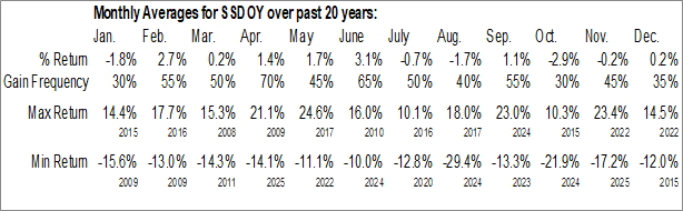 Shiseido Company Ltd. (OTCMKT:SSDOY) Seasonal Chart