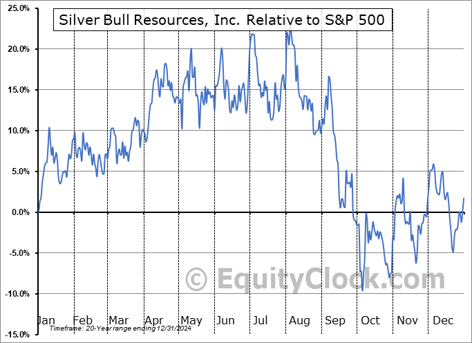 Analysis of the Silver Bull Resources, Inc. (OTCMKT:SVBL) seasonal charts above shows that a Buy Date of December 21 and a Sell Date of April 9 has resulted in a geometric average return of 14.17% above the benchmark rate of the S&P 500 Total Return Index over the past 20 years. This seasonal timeframe has shown positive results compared to the benchmark in 13 of those periods. This is a good rate of success and the return strongly outperforms the relative buy-and-hold performance of the stock over the past 20 years by an average of 44.16% per year.