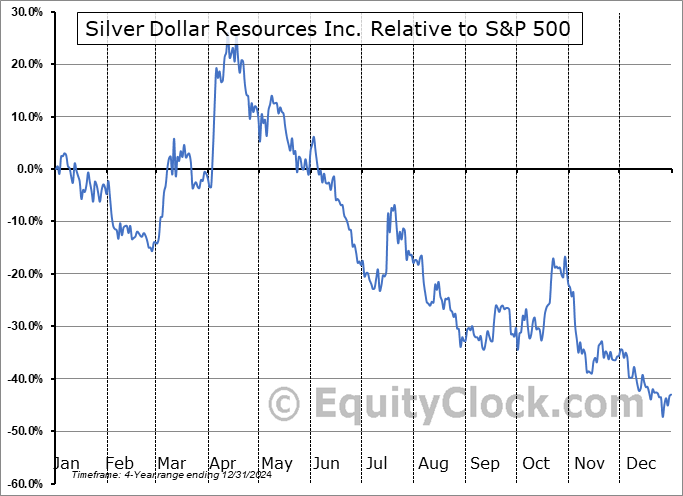 Analysis of the Silver Dollar Resources Inc. (OTCMKT:SLVDF) seasonal charts above shows that a Buy Date of December 12 and a Sell Date of April 12 has resulted in a geometric average return of 26.22% above the benchmark rate of the S&P 500 Total Return Index over the past 4 years. This seasonal timeframe has shown positive results compared to the benchmark in 3 of those periods. This is a good rate of success and the return strongly outperforms the relative buy-and-hold performance of the stock over the past 4 years by an average of 73.49% per year.