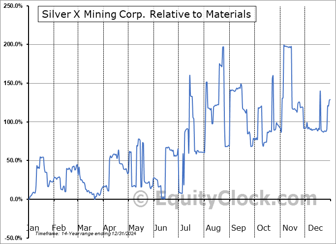 Analysis of the Silver X Mining Corp. (OTCMKT:AGXPF) seasonal charts above shows that a Buy Date of October 12 and a Sell Date of January 19 has resulted in a geometric average return of 47.52% above the benchmark rate of the S&P 500 Total Return Index over the past 14 years. This seasonal timeframe has shown positive results compared to the benchmark in 11 of those periods. This is a good rate of success and the return strongly outperforms the relative buy-and-hold performance of the stock over the past 14 years by an average of 67.45% per year.