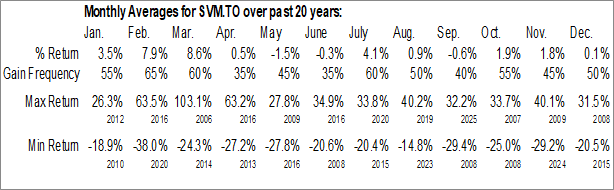 To download SVM.TO seasonal chart data, please log in or Subscribe.