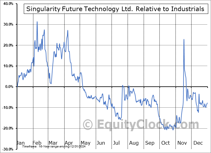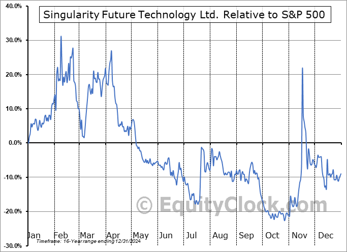 Analysis of the Singularity Future Technology Ltd. (NASD:SGLY) seasonal charts above shows that a Buy Date of December 28 and a Sell Date of March 28 has resulted in a geometric average return of 6.5% above the benchmark rate of the S&P 500 Total Return Index over the past 16 years. This seasonal timeframe has shown positive results compared to the benchmark in 8 of those periods. This is a poor rate of success and the return strongly outperforms the relative buy-and-hold performance of the stock over the past 16 years by an average of 41.17% per year.