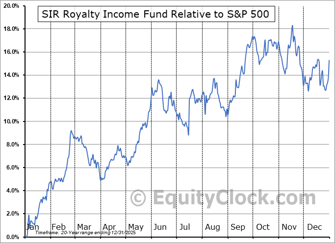 Analysis of the SIR Royalty Income Fund (TSE:SRV/UN.TO) seasonal charts above shows that a Buy Date of November 10 and a Sell Date of January 31 has resulted in a geometric average return of 5.77% above the benchmark rate of the S&P 500 Total Return Index over the past 20 years. This seasonal timeframe has shown positive results compared to the benchmark in 16 of those periods. This is a very good rate of success and the return strongly outperforms the relative buy-and-hold performance of the stock over the past 20 years by an average of 3.82% per year.