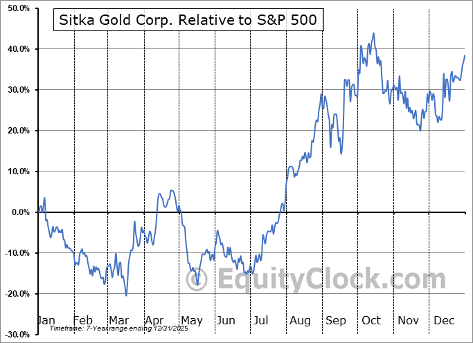 Analysis of the Sitka Gold Corp. (TSXV:SIG.V) seasonal charts above shows that a Buy Date of June 27 and a Sell Date of September 21 has resulted in a geometric average return of 40.05% above the benchmark rate of the S&P 500 Total Return Index over the past 6 years. This seasonal timeframe has shown positive results compared to the benchmark in 5 of those periods. This is a very good rate of success and the return strongly outperforms the relative buy-and-hold performance of the stock over the past 6 years by an average of 38.57% per year.