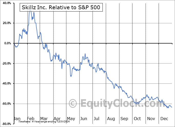 Analysis of the Skillz Inc. (NYSE:SKLZ) seasonal charts above shows that a Buy Date of October 12 and a Sell Date of February 15 has resulted in a geometric average return of 10.77% above the benchmark rate of the S&P 500 Total Return Index over the past 4 years. This seasonal timeframe has shown positive results compared to the benchmark in 2 of those periods. This is a poor rate of success and the return strongly outperforms the relative buy-and-hold performance of the stock over the past 4 years by an average of 81.24% per year.