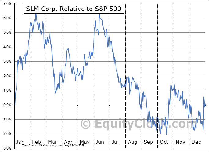 Analysis of the SLM Corp. (NASD:SLMBP) seasonal charts above shows that a Buy Date of December 15 and a Sell Date of March 4 has resulted in a geometric average return of 4.08% above the benchmark rate of the S&P 500 Total Return Index over the past 19 years. This seasonal timeframe has shown positive results compared to the benchmark in 15 of those periods. This is a good rate of success and the return strongly outperforms the relative buy-and-hold performance of the stock over the past 19 years by an average of 11.99% per year.