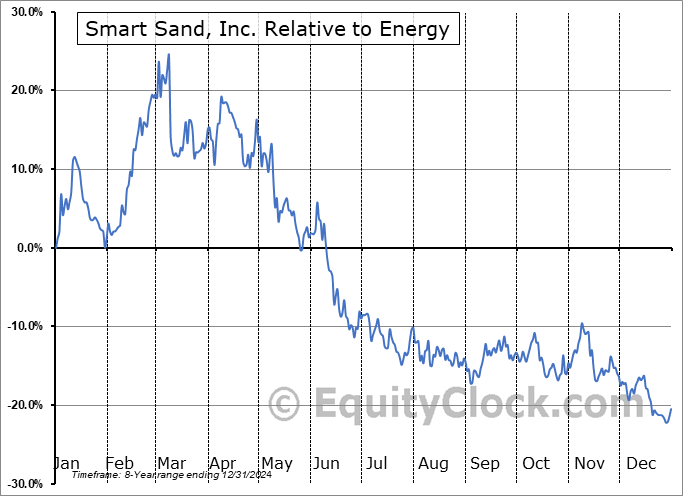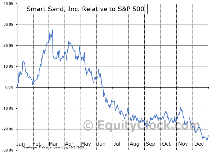 Analysis of the Smart Sand, Inc. (NASD:SND) seasonal charts above shows that a Buy Date of August 10 and a Sell Date of November 11 has resulted in a geometric average return of 3.76% above the benchmark rate of the S&P 500 Total Return Index over the past 8 years. This seasonal timeframe has shown positive results compared to the benchmark in 6 of those periods. This is a good rate of success and the return strongly outperforms the relative buy-and-hold performance of the stock over the past 8 years by an average of 35.49% per year.