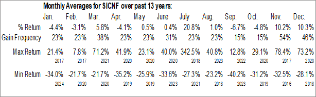 Sokoman Minerals Corp. (OTCMKT:SICNF) Seasonal Chart