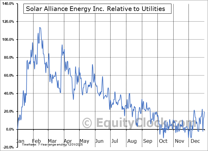 Analysis of the Solar Alliance Energy Inc. (OTCMKT:SAENF) seasonal charts above shows that a Buy Date of December 18 and a Sell Date of April 12 has resulted in a geometric average return of 49.92% above the benchmark rate of the S&P 500 Total Return Index over the past 7 years. This seasonal timeframe has shown positive results compared to the benchmark in 6 of those periods. This is a very good rate of success and the return strongly outperforms the relative buy-and-hold performance of the stock over the past 7 years by an average of 73.72% per year.
