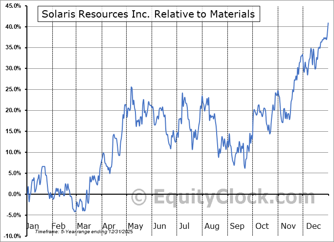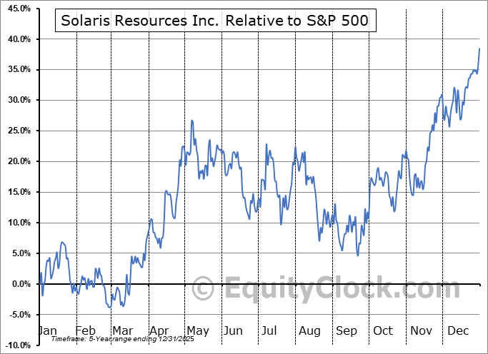 Analysis of the Solaris Resources Inc. (AMEX:SLSR) seasonal charts above shows that a Buy Date of December 12 and a Sell Date of April 15 has resulted in a geometric average return of 25.2% above the benchmark rate of the S&P 500 Total Return Index over the past 4 years. This seasonal timeframe has shown positive results compared to the benchmark in 4 of those periods. This is an excellent rate of success and the return strongly outperforms the relative buy-and-hold performance of the stock over the past 4 years by an average of 45.78% per year.