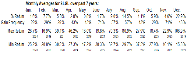 A word of caution: Only 6 years of data is available for shares of SLGL, perhaps insufficient to create a seasonal profile that accurately gauges the seasonal tendencies influencing the investment. Ideally, while 20 years is preferred, at least 10 years of data is required to perform a seasonal analysis that is considered to be reliable for future seasonal periods.