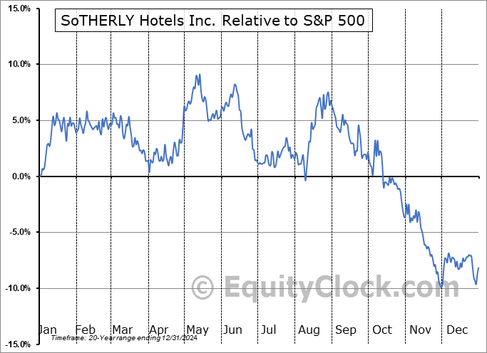 Analysis of the SoTHERLY Hotels Inc. (NASD:SOHO) seasonal charts above shows that a Buy Date of April 17 and a Sell Date of July 20 has resulted in a geometric average return of 1.5% above the benchmark rate of the S&P 500 Total Return Index over the past 20 years. This seasonal timeframe has shown positive results compared to the benchmark in 16 of those periods. This is a very good rate of success and the return strongly outperforms the relative buy-and-hold performance of the stock over the past 20 years by an average of 17.83% per year.