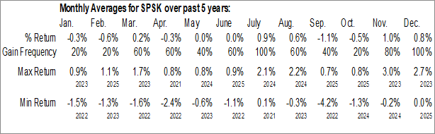 A word of caution: Only 5 years of data is available for shares of SPSK, perhaps insufficient to create a seasonal profile that accurately gauges the seasonal tendencies influencing the investment. Ideally, while 20 years is preferred, at least 10 years of data is required to perform a seasonal analysis that is considered to be reliable for future seasonal periods.