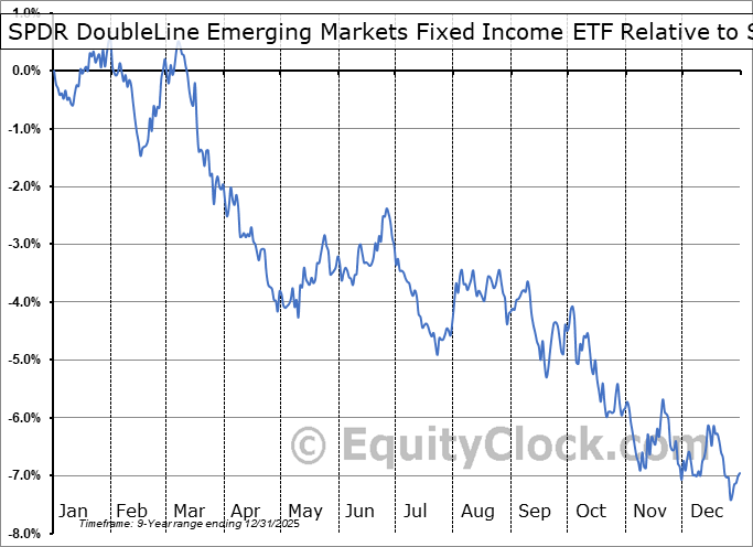 Analysis of the SPDR DoubleLine Emerging Markets Fixed Income ETF (AMEX:EMTL) seasonal charts above shows that a Buy Date of February 15 and a Sell Date of May 12 has resulted in a geometric average return of 0.41% above the benchmark rate of the S&P 500 Total Return Index over the past 8 years. This seasonal timeframe has shown positive results compared to the benchmark in 4 of those periods. This is a poor rate of success and the return strongly outperforms the relative buy-and-hold performance of the stock over the past 8 years by an average of 10.94% per year.