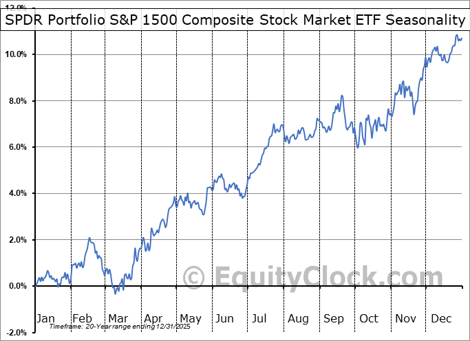 SPDR Portfolio S&P 1500 Composite Stock Market ETF (AMEX:SPTM) Seasonal Chart