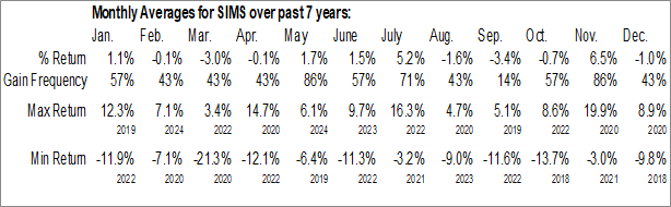 SPDR S&P Kensho Intelligent Structures ETF (AMEX:SIMS) Seasonal Chart