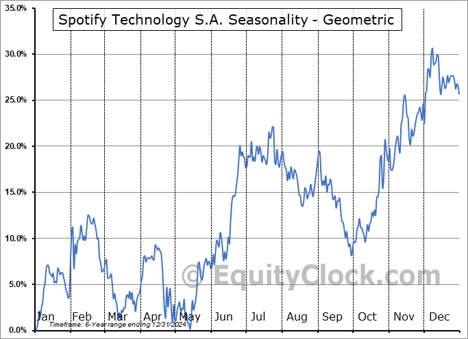 A word of caution: Only 6 years of data is available for shares of SPOT, perhaps insufficient to create a seasonal profile that accurately gauges the seasonal tendencies influencing the investment. Ideally, while 20 years is preferred, at least 10 years of data is required to perform a seasonal analysis that is considered to be reliable for future seasonal periods.