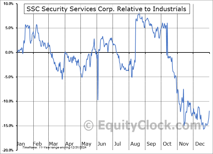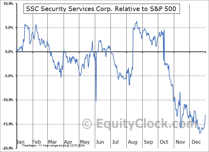 Analysis of the SSC Security Services Corp. (OTCMKT:SECUF) seasonal charts above shows that a Buy Date of November 15 and a Sell Date of February 6 has resulted in a geometric average return of 7.99% above the benchmark rate of the S&P 500 Total Return Index over the past 11 years. This seasonal timeframe has shown positive results compared to the benchmark in 9 of those periods. This is a very good rate of success and the return strongly outperforms the relative buy-and-hold performance of the stock over the past 11 years by an average of 25.47% per year.