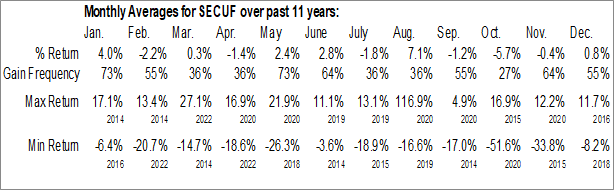 SSC Security Services Corp. (OTCMKT:SECUF) Seasonal Chart