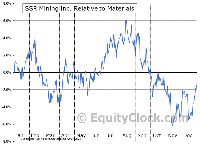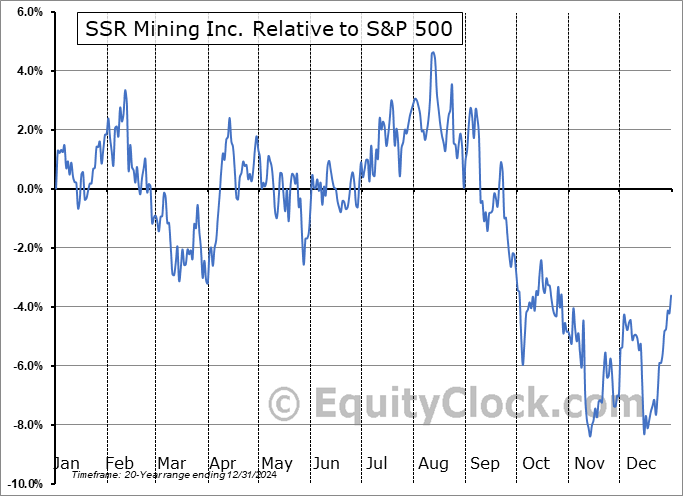 Analysis of the SSR Mining Inc. (NASD:SSRM) seasonal charts above shows that a Buy Date of December 15 and a Sell Date of March 4 has resulted in a geometric average return of 0.46% above the benchmark rate of the S&P 500 Total Return Index over the past 20 years. This seasonal timeframe has shown positive results compared to the benchmark in 15 of those periods. This is a good rate of success and the return strongly outperforms the relative buy-and-hold performance of the stock over the past 20 years by an average of 11.6% per year.