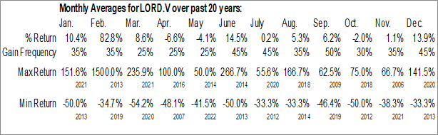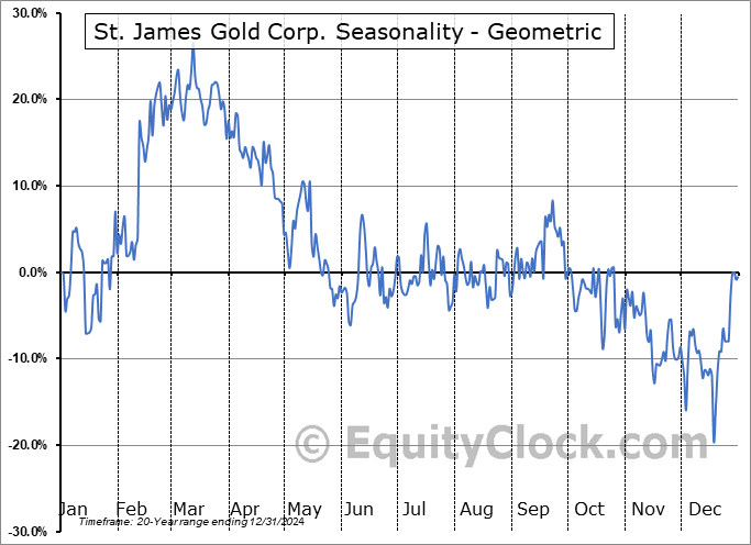 St. James Gold Corp. (TSXV:LORD.V) Seasonal Chart