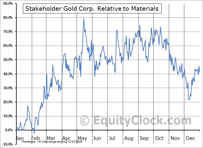 Analysis of the Stakeholder Gold Corp. (TSXV:SRC.V) seasonal charts above shows that a Buy Date of December 10 and a Sell Date of March 1 has resulted in a geometric average return of 44.75% above the benchmark rate of the S&P 500 Total Return Index over the past 13 years. This seasonal timeframe has shown positive results compared to the benchmark in 9 of those periods. This is a good rate of success and the return strongly outperforms the relative buy-and-hold performance of the stock over the past 13 years by an average of 70.24% per year.