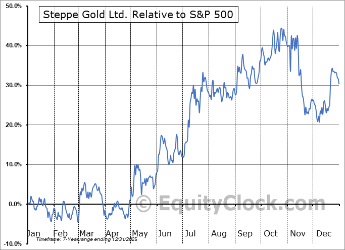 Analysis of the Steppe Gold Ltd. (TSE:STGO.TO) seasonal charts above shows that a Buy Date of December 18 and a Sell Date of March 13 has resulted in a geometric average return of 10.02% above the benchmark rate of the S&P 500 Total Return Index over the past 7 years. This seasonal timeframe has shown positive results compared to the benchmark in 7 of those periods. This is an excellent rate of success and the return strongly outperforms the relative buy-and-hold performance of the stock over the past 7 years by an average of 14.52% per year.