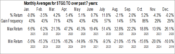 To download STGO.TO seasonal chart data, please log in or Subscribe.