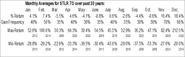 To download STLR.TO seasonal chart data, please log in or Subscribe.