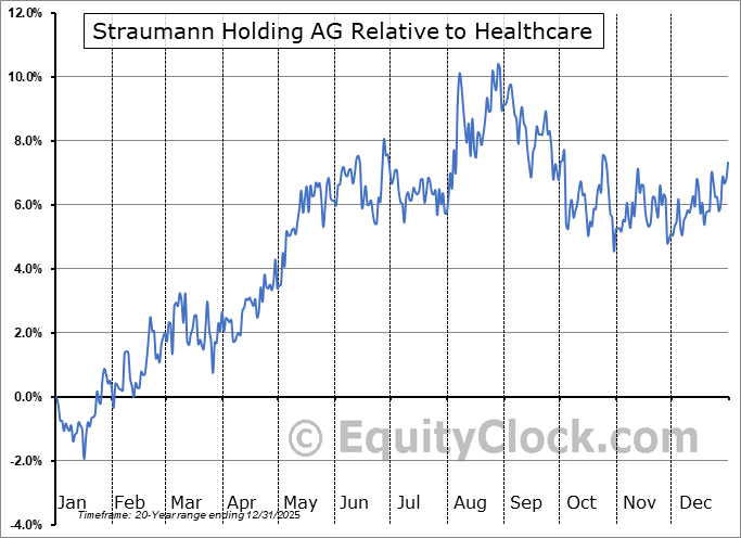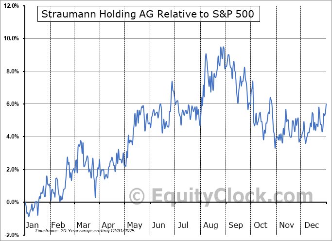 Analysis of the Straumann Holding AG (OTCMKT:SAUHF) seasonal charts above shows that a Buy Date of May 2 and a Sell Date of August 7 has resulted in a geometric average return of 5.99% above the benchmark rate of the S&P 500 Total Return Index over the past 19 years. This seasonal timeframe has shown positive results compared to the benchmark in 16 of those periods. This is a very good rate of success and the return strongly outperforms the relative buy-and-hold performance of the stock over the past 19 years by an average of 5.79% per year.